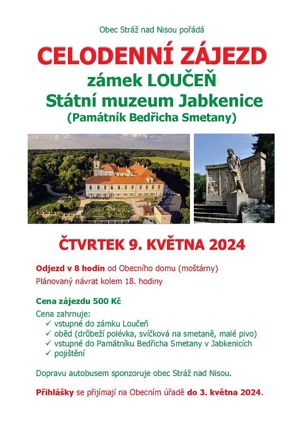 Platba zájezdu možná na obecním úřadě v hotovosti.
