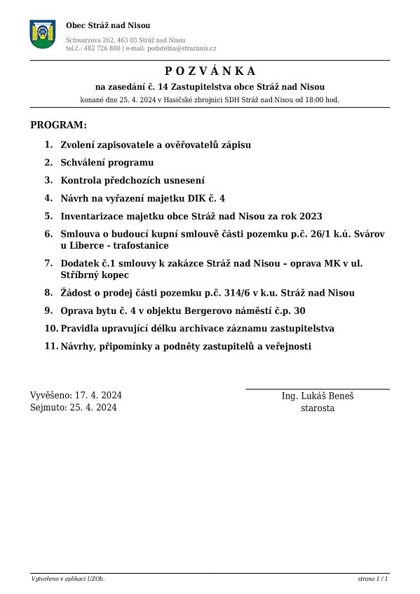 Odkaz ke sledování přímého přenosu ze zasedání ZO ZDE